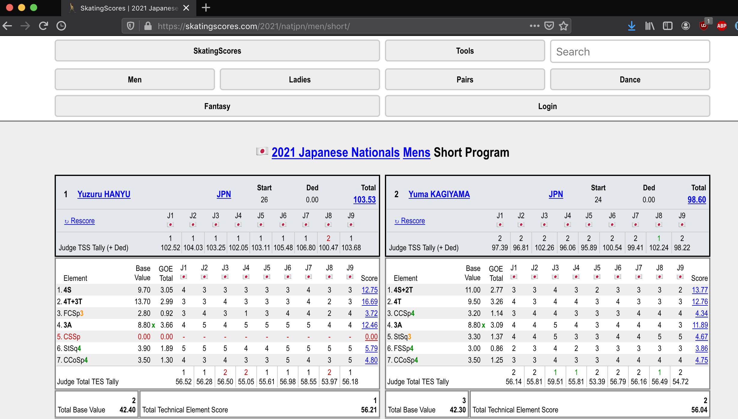 We are interested in the stripy tables of element scores, the blue skater names, the big event title and the nicely formatted url.